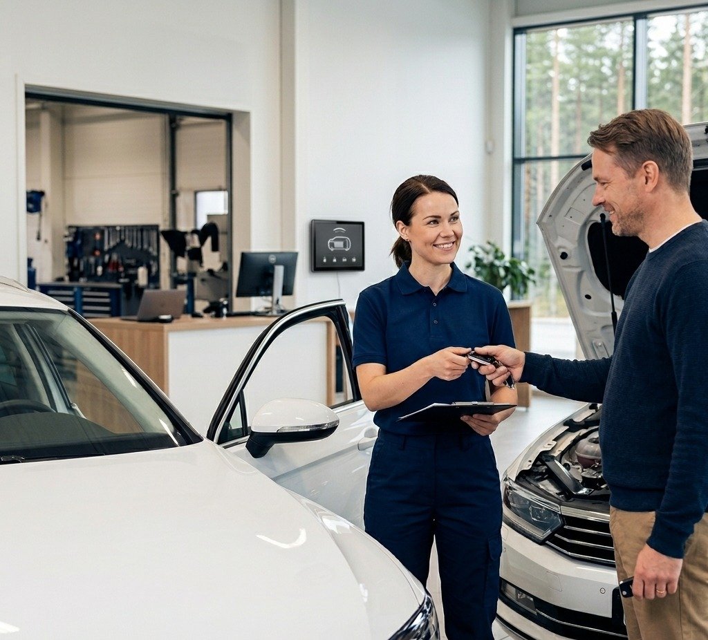 Ilmoitamme heti kun autosi on valmis. Hae avaimet ja nauti turvallisista kilometreistä!